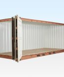 Este modelo dispõe de portas duplas na extremidade e portas duplas ao longo de um dos lados, permitindo uma abertura ampla e versátil. A estrutura em aço corten garante robustez e resistência às condições exteriores, sendo um contentor estanque ao vento e à água.