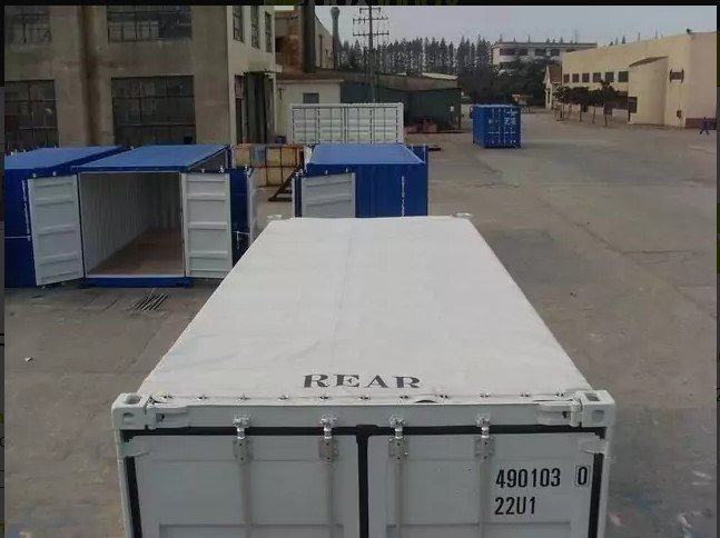 Os contentores open-top não possuem o tejadilho convencional de aço ondulado. Em vez disso, possuem amarras amovíveis e uma lona resistente às intempéries que pode ser fixada com cordas. Isto simplifica muito o processo de carga e descarga, que é normalmente realizado com uma grua por cima. A padieira da porta (acima da porta) também pode ser rodada/removida para facilitar o acesso à carga.